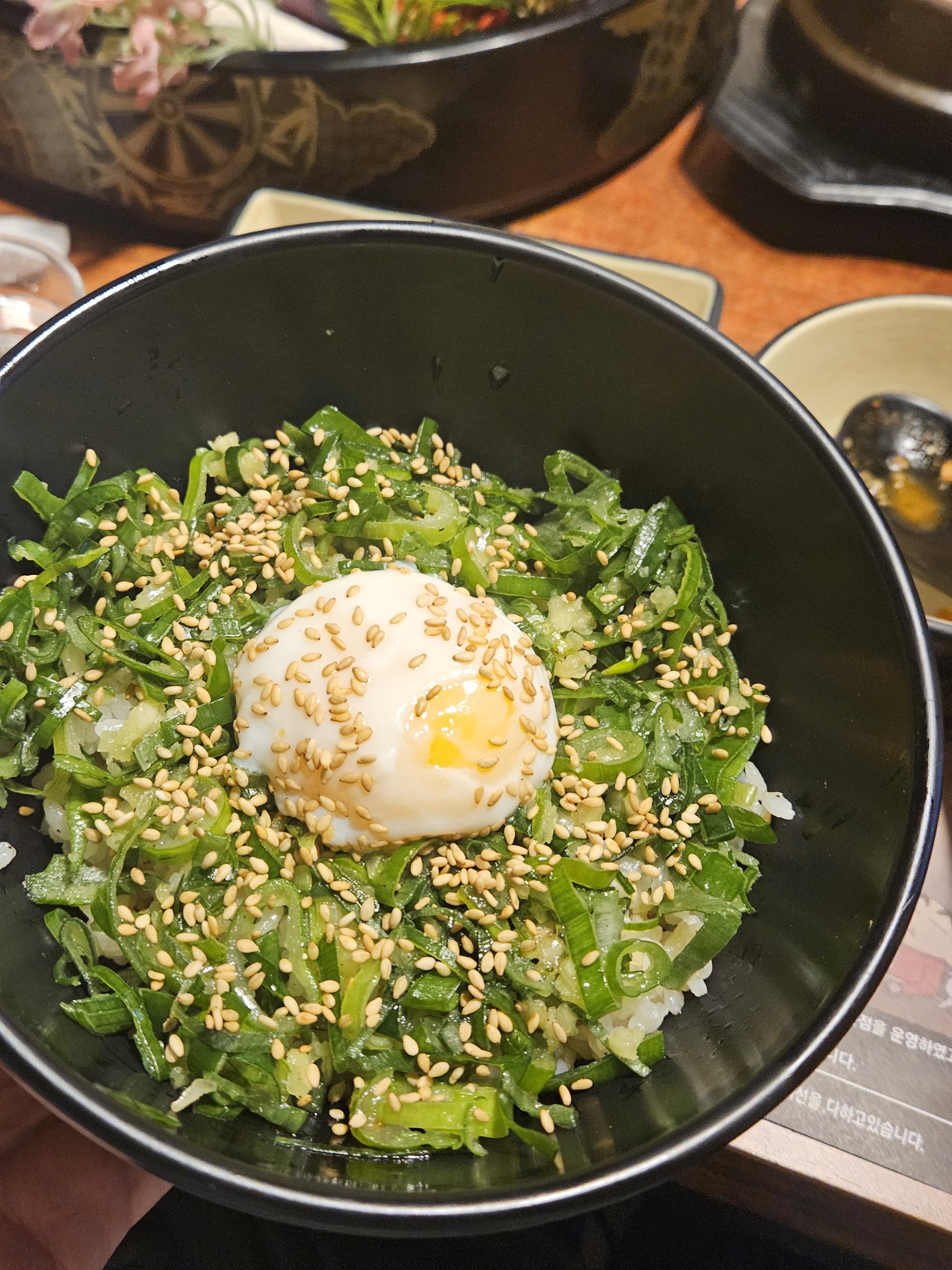대파밥은 신기해서 시켜 보았는데 안시켰으면 큰일 날 뻔했어요. 다져진 파에 반숙 계란과 고소한 깨가 올려져있어서 고기와도 정말 잘어울리고 별미였어요. 대파를 좋아하지 않는 사람도 고기와 함께 곁들여먹으면 한 그릇 정도는 뚝딱 먹을 수 있을 것 같아요! 대파밥은 정말 필수 강추합니다!