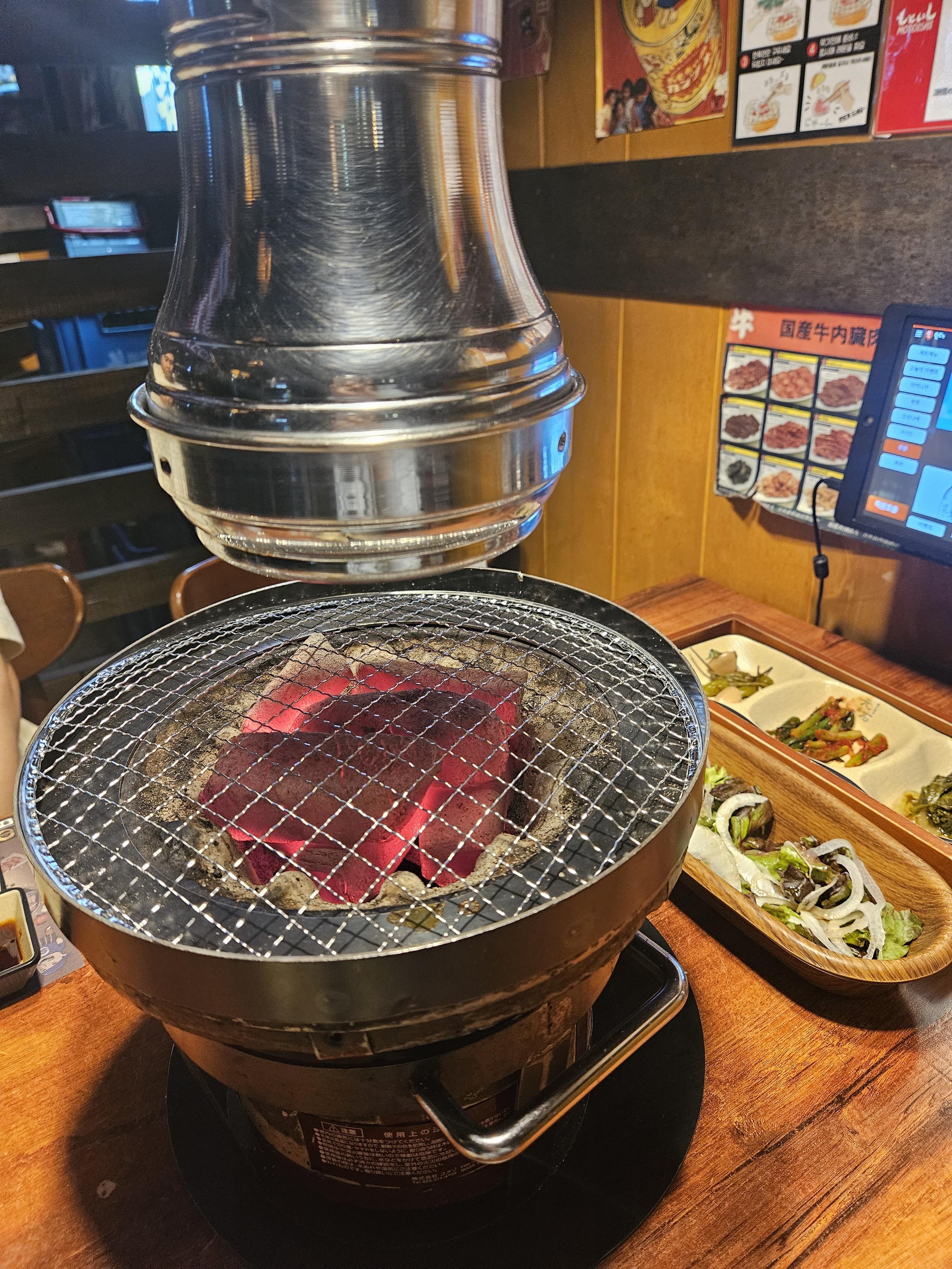 이날 좀 날씨가 쌀쌀했는데 테이블 위 화로불을 올리니 뜨끈하니 좋더라구요. 숯불도 저렴한 숯이 아닌듯해 굉장히 기대가 되었어요.