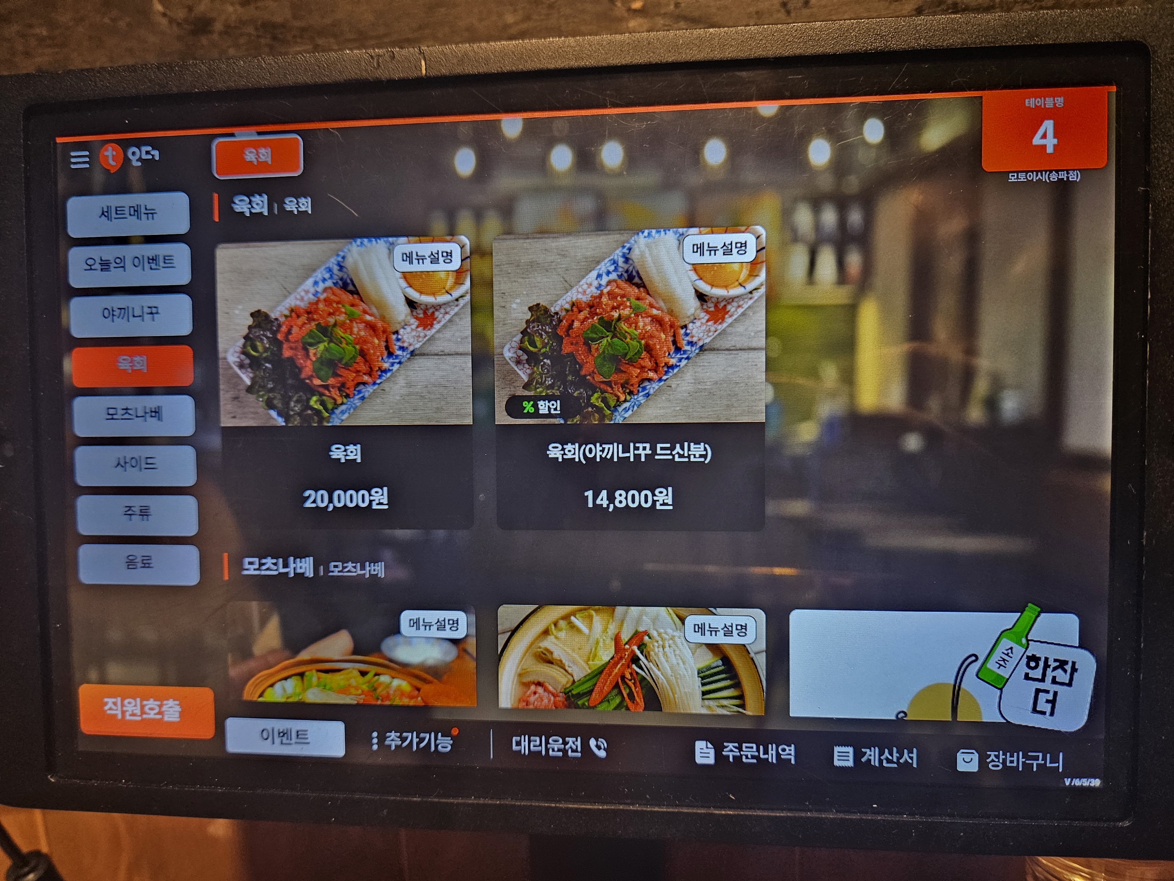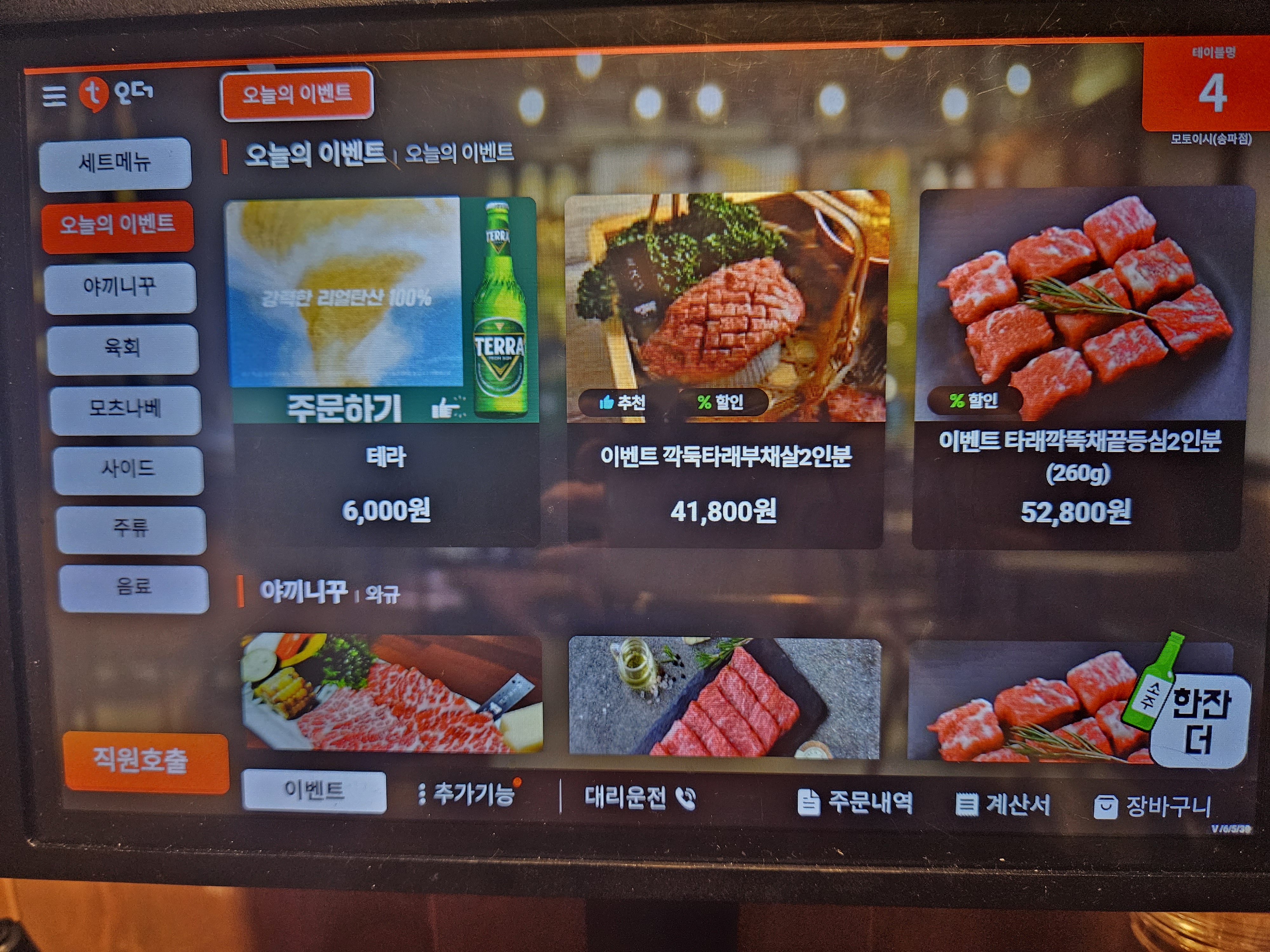 메뉴는 태블릿으로 주문하면 되고 다양하게 먹을 수 있도록 세트메뉴도 있어서 많이 저렴하진 않지만.. 그래도 조금 저렴한 가격으로 먹을 수 있어요ㅎㅎ..