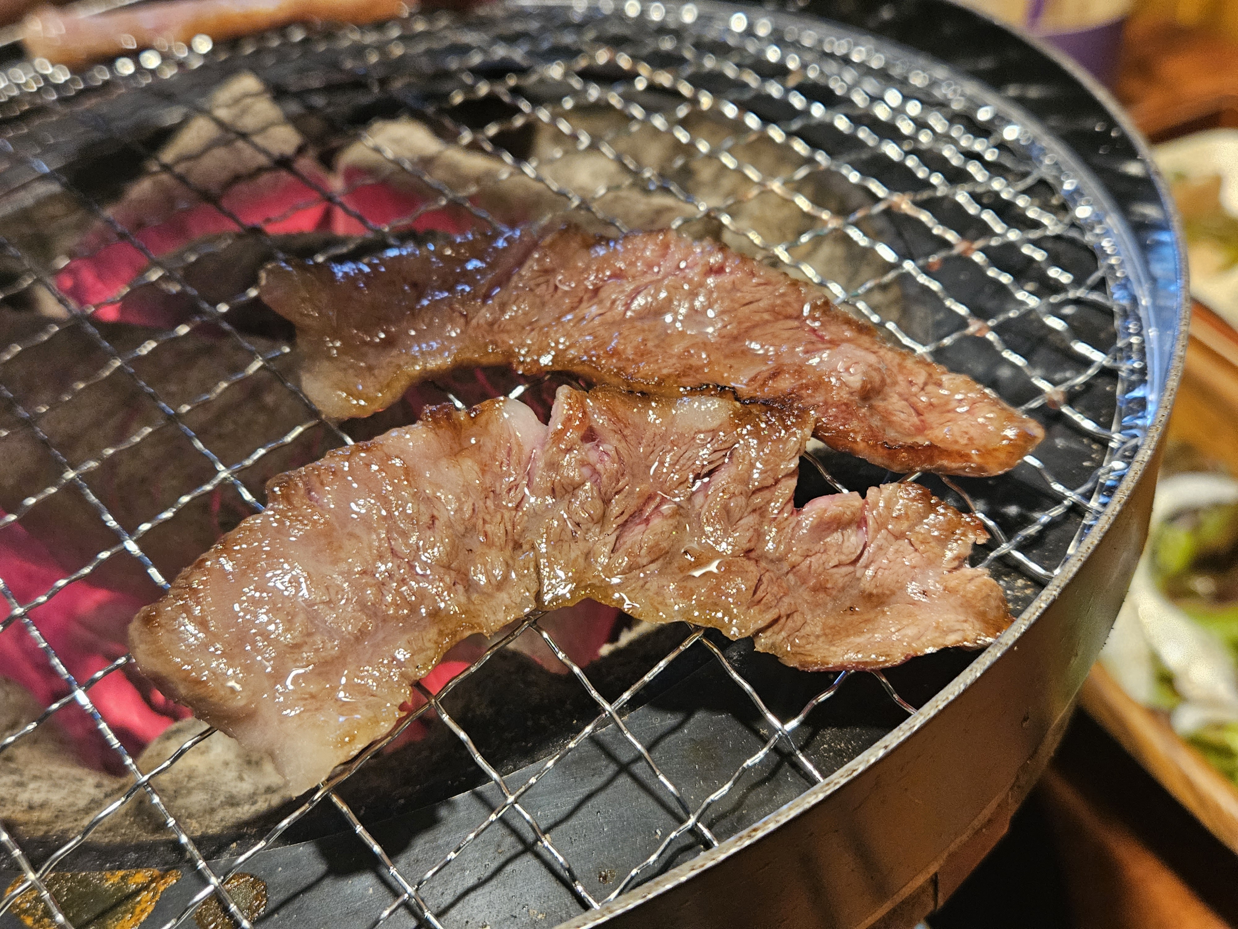 마지막으로는 지방이 가득한 삼각살을 먹었어요. 구우니 뻑뻑한 느낌이 들긴했지만 실제로 먹으면 입안에 육즙이 느껴지면서 정말 맛있더라구요~ 기념일이나 좋은날이 생기면 꼭 데려가고싶은 야끼니쿠 맛집이였어요.